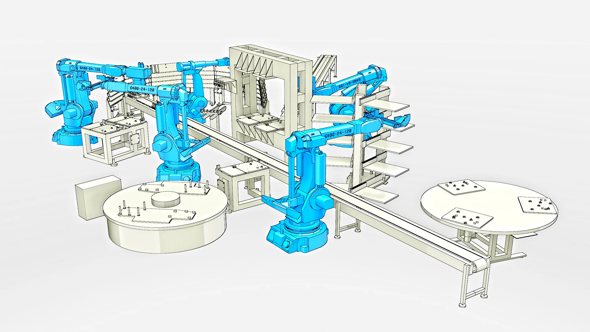 Simulaciones roboticas y de procesos industriales: ensamblado, soldadura, pintura.
