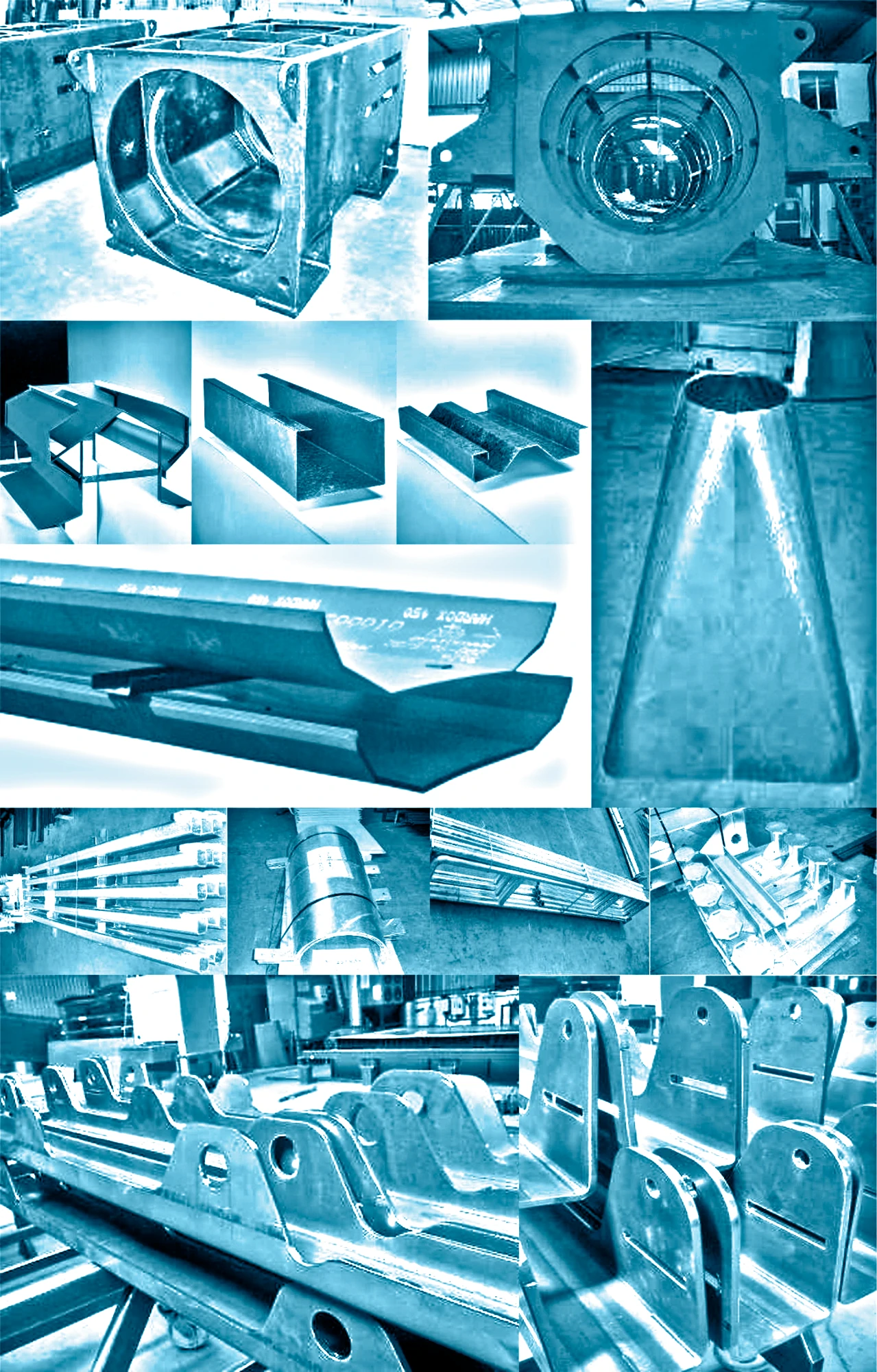 Conjuntos mecano soldados en acero al carbono o acero inoxidable. con dimensiones máximas de 4000x4000x20000 mm.